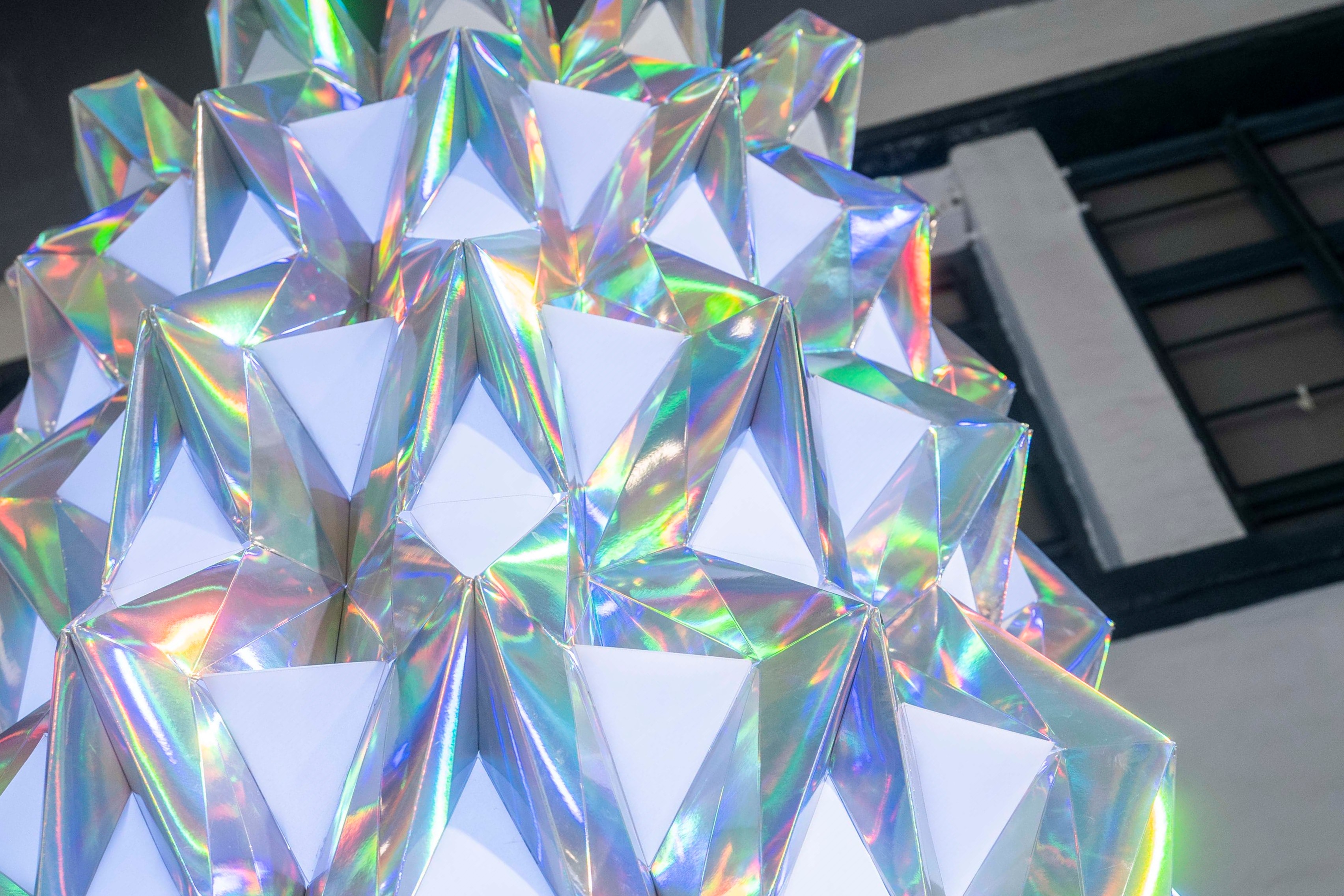 Stickyline is a studio that focuses on paper engineering and structure development by folding and creasing materials. In the shape of a truncated cone, this 3.6-metre-tall tower made with paper latticework modules is co-created by Stickyline and members of the community where the work is exhibited. Embedded with lighting to illuminate the piece and its surroundings from the inside, the tower is supported by a base, which is an extension of the paper modules and radiates outward to cover part of the floor. The creative pair Soilworm Lai and Mic Leong see Blooming as both a tribute to and an allegory for industrial design in Hong Kong. The origin of industrial design in this former British colony can be traced back to small-scale, homegrown cottage industries, where a significant amount of labour was involved in handicrafts. Early successes in Hong Kong’s post-war light industry were characterised by practical, often no-frills design, and efficient, intricate handiwork. In recent years, the practice of combining design and craft has resurged and led to many co-creation and social innovation projects. Blooming is one such project that brings people together. It is a structural and sculptural piece that celebrates the shared ingenuity of design and handicraft.