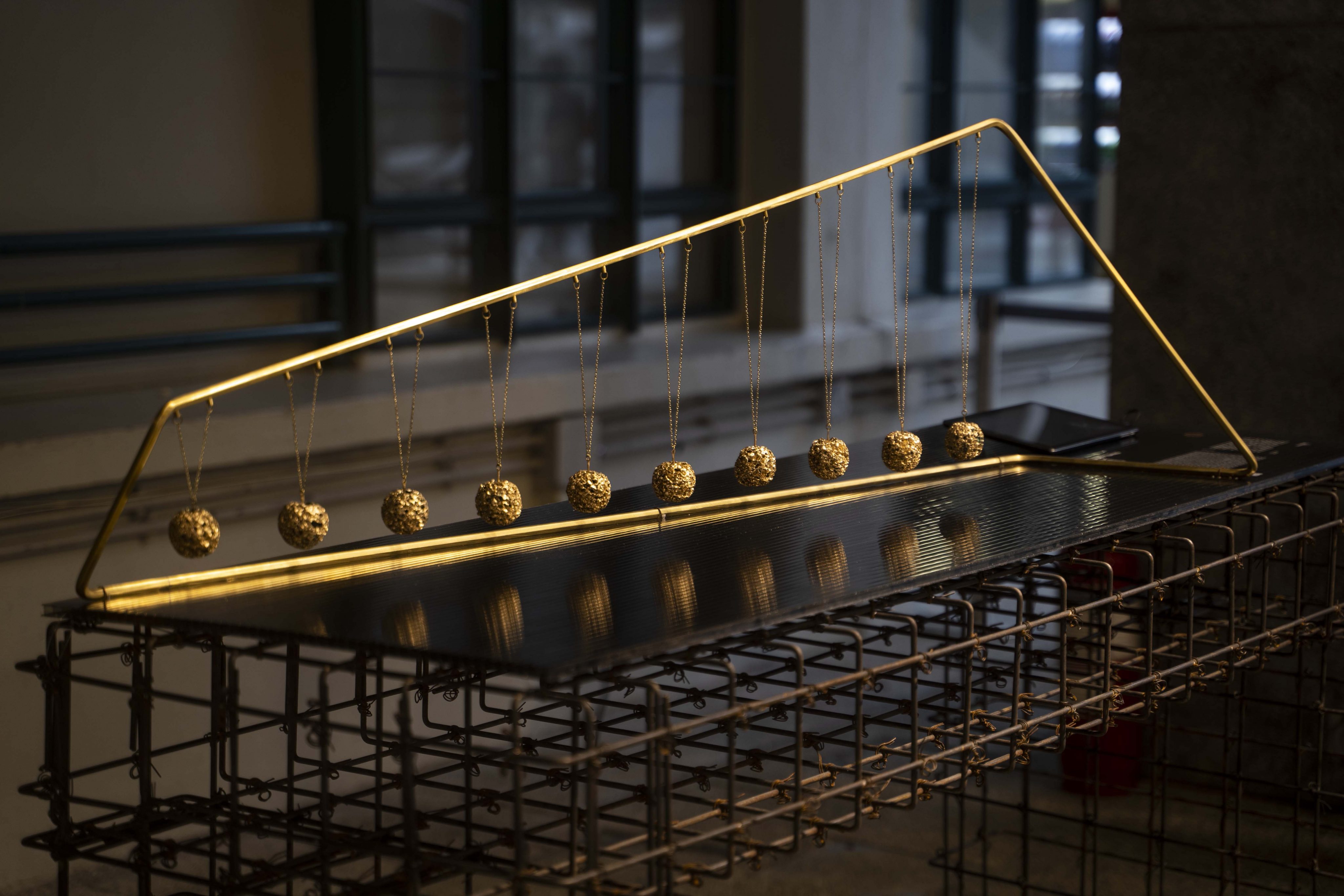 Located in an upscale residential neighbourhood on Hong Kong Island, Haw Par Mansion and the adjoining Tiger Balm Garden were once a popular destination for Hongkongers to spend a weekend afternoon. While the mansion has been preserved as a historic landmark, the redeveloped garden has become a collective memory. Hong Kong and Italian-trained designer Xavier Tsang collected stories about the mansion complex. The group of sculptures commonly known as the Ten Courts of Hell have left a lasting impression on many people because their graphic depiction of blood and violence served as an effective lesson in morality for children and adults alike. Inspired by this, Tsang, who is also the founder of the artisan candle company BeCandle in Sai Kung, Hong Kong, created an olfactory experience to evoke the shockingly gruesome imagery of the group of sculptures. The ideas behind 10 Scents originate in the folk understanding of the realm of the dead. The installation includes the scents of fire, ice, blood and metal, each representing the torment of the dominant element to which departed souls are subjected. Tsang also designed a pendulum in which aluminium foam, an experimental material, is used to trap and diffuse fragrance oil. Swinging into action, Tsang’s pendulum diffuser recreates the well-known narrative from the Hong Kong heritage site.