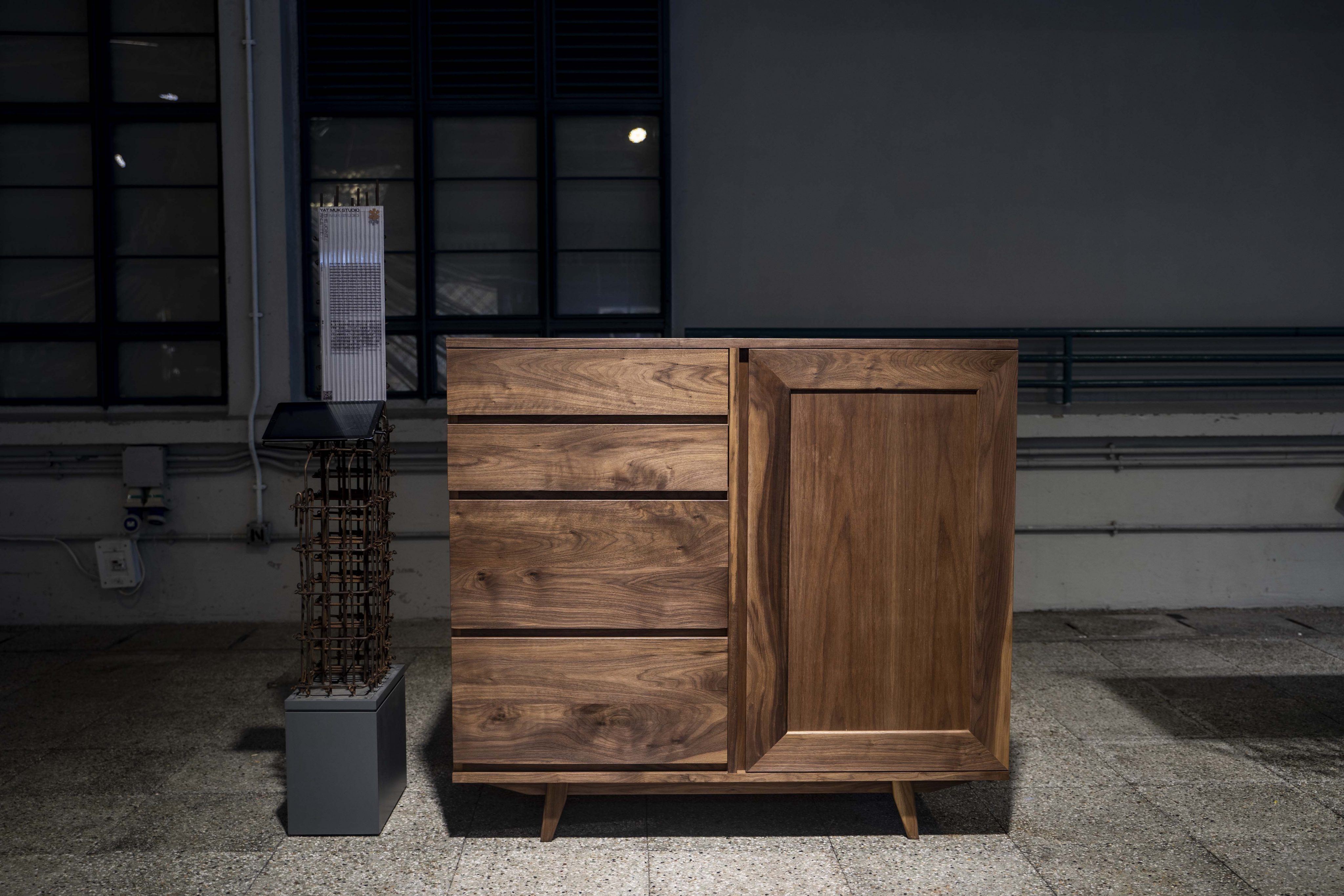 Ken Chow is a passionate woodworker. Having chosen to devote his career life to carpentry and perfect his craft through experimentation and innovation, Chow completed many apprenticeships and finally founded Yat Muk Studio to practise, research and teach joinery full-time. This cabinet, called The Joint Palette, was custom-made for the exhibition in response to the fast culture economy which dominates our workforce. The four drawers feature delicate joints created through different methods and compositions, ranging from traditional to contemporary. To Chow, carpentry is a soul-searching and meditative experience. The culmination of Chow’s research of Hong Kong’s woodworking traditions and his craftsmanship show how an experienced master makes judicious use of tools, skills and raw materials, as well as the strength and beauty of wood.
