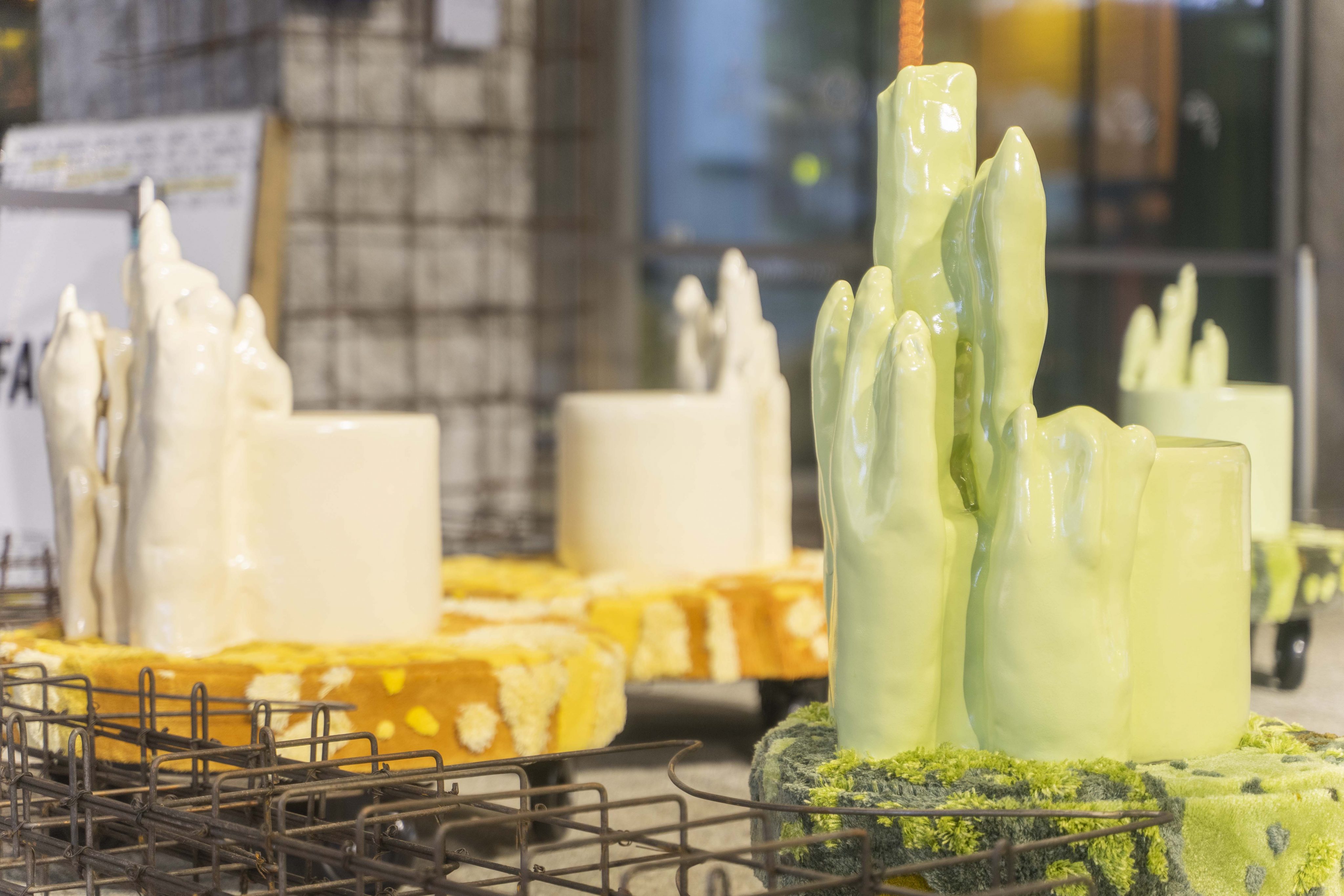 虎豹別墅和毗鄰的萬金油花園位於香港島高尚住宅區,曾經是香港人週末閒暇休憩的熱門地點。如今,虎豹別墅雖得以保育為歷史建築,萬金油花園卻已被改建發展,成為了集體回憶。過往,孩子常常於萬金油花園具有異國風情的雕像、建築與園景間嬉戲,昔日的假山與石林現今則成為了香港陶瓷設計師兼藝術家Julie Progin與Jesse Mc Lin的創作靈感。設計二人組Julie & Jesse顛覆了萬金油花園石林的概念,設計出一系列非凡的凳子式作品,形態仿如色彩繽紛的中式觀賞岩石,並加上了地氈和輪子。
